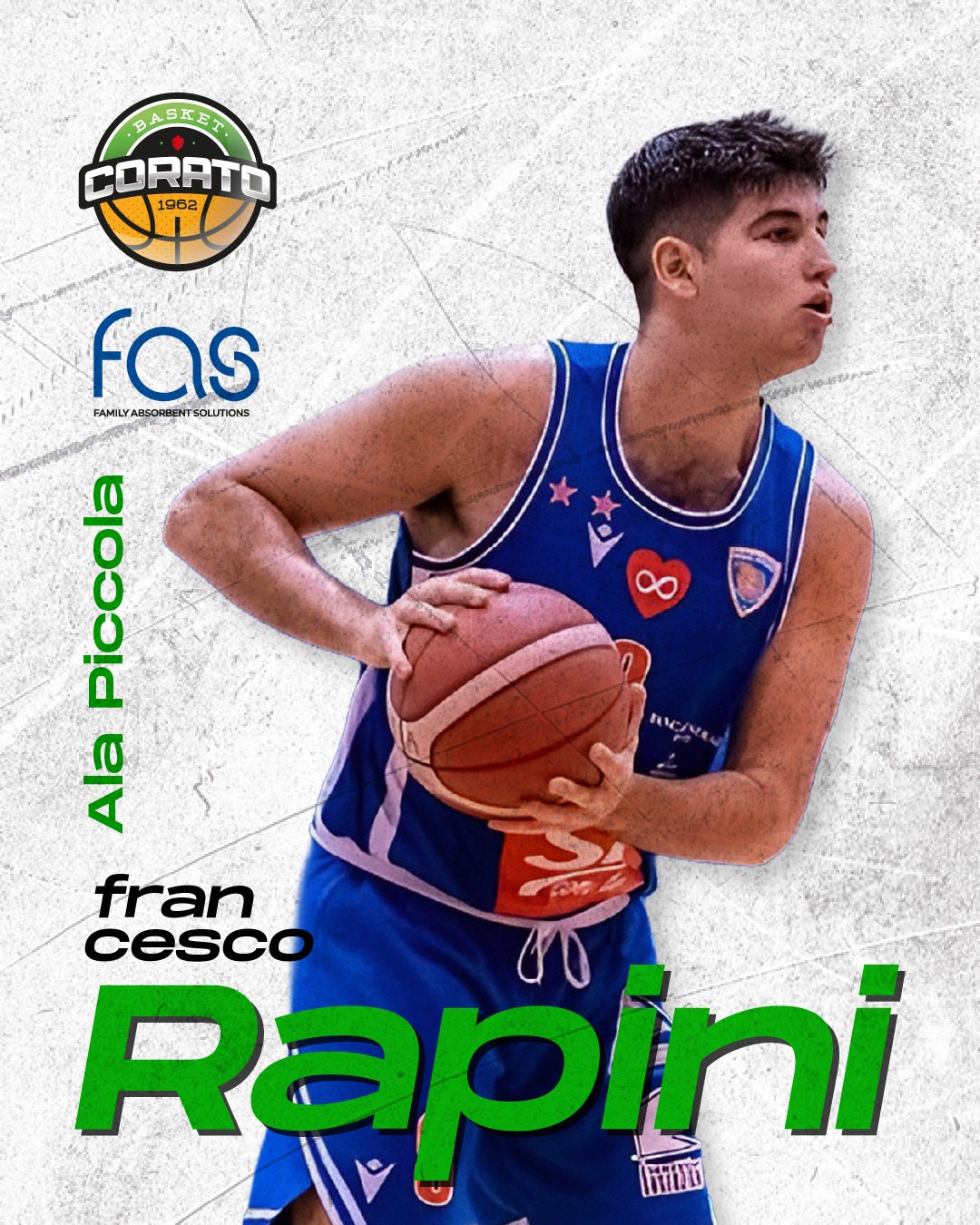 La Fas Basket Corato si rinforza e si regala un colpo in prospettiva sul mercato. La società neroverde comincia l’anno arricchendo il proprio roster con l’ingaggio di Francesco Rapini, ala piccola classe 2004.